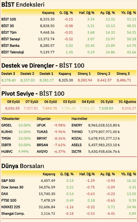 15 Eylül 2023 saa 16:00 itibari ile borsada en çok yükselen hisseler ve en çok düşen hisseleri paylaşayım: